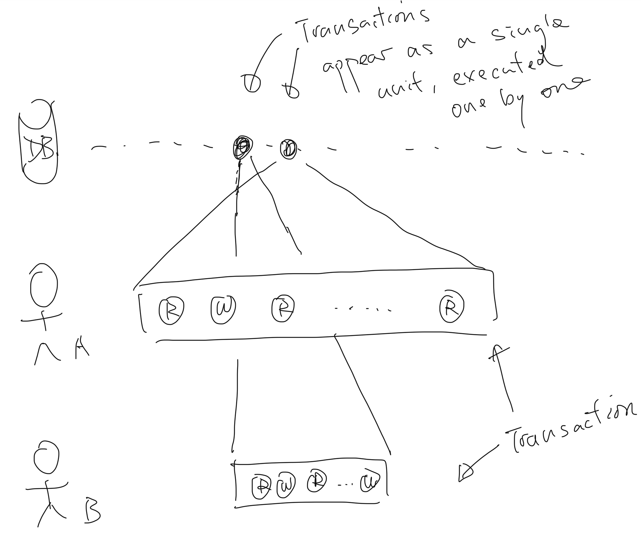 - every transaction appears to run as a single atomic unit, and those transactions behave the same as if they had executed one by one in some sequential order